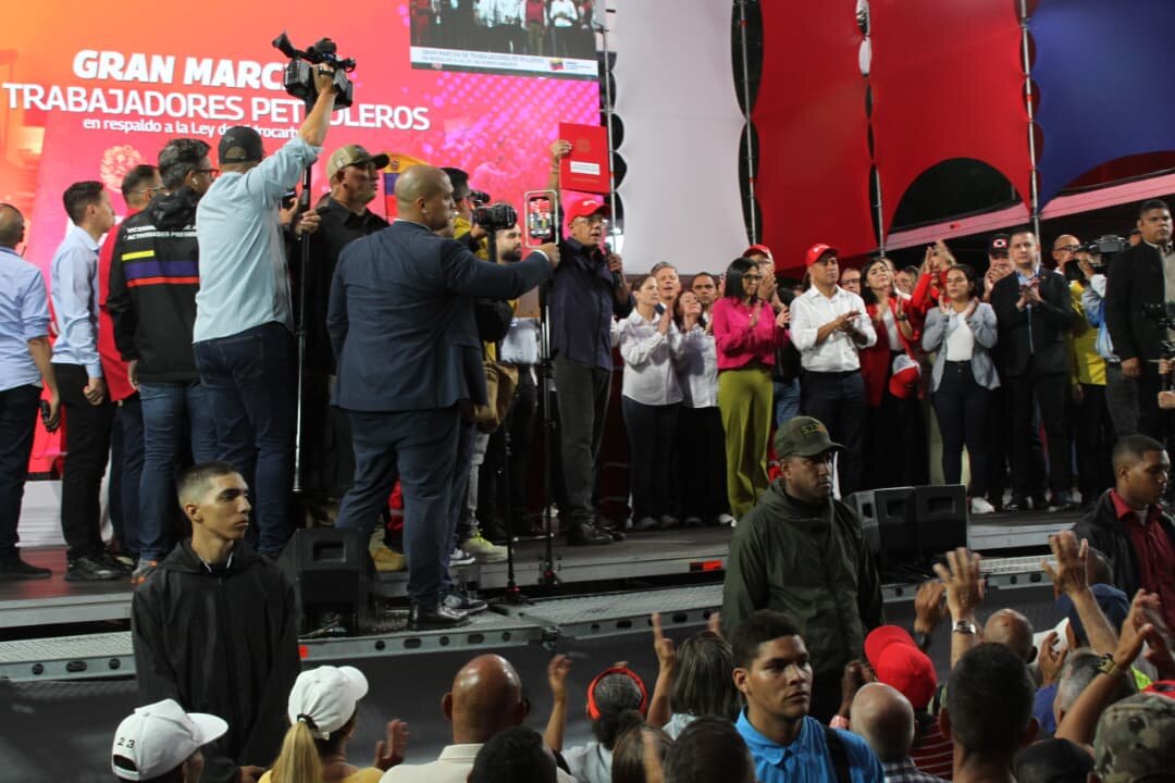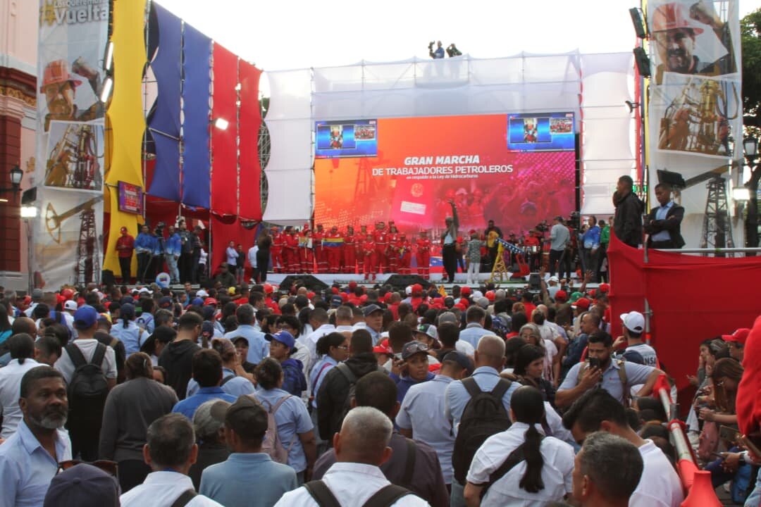 Caracas, 30 de enero de 2026 Trabajadores petroleros marcharon al Parlamento para respaldar la aprobación y firma de la Reforma Parcial de la Ley Orgánica de Hidrocarburos por Delcy Rodríguez.