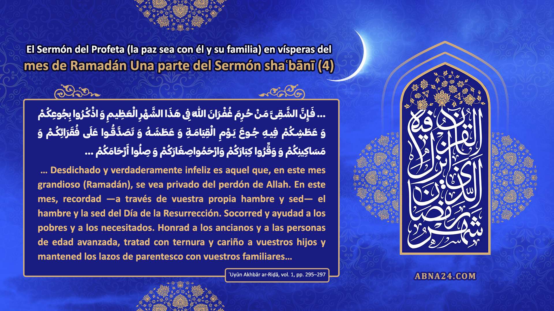 página de inicio Servicio de noticias Imágenes El Sermón del Profeta (BP) en vísperas del mes de Ramadán – Una parte del Sermón Shaʿbānī – Parte 4 24 febrero 2026 - 16:43 Código de noticia: 1782750 fuente: Abna24 Etiquetas Ramadán Día de la Resurrección
