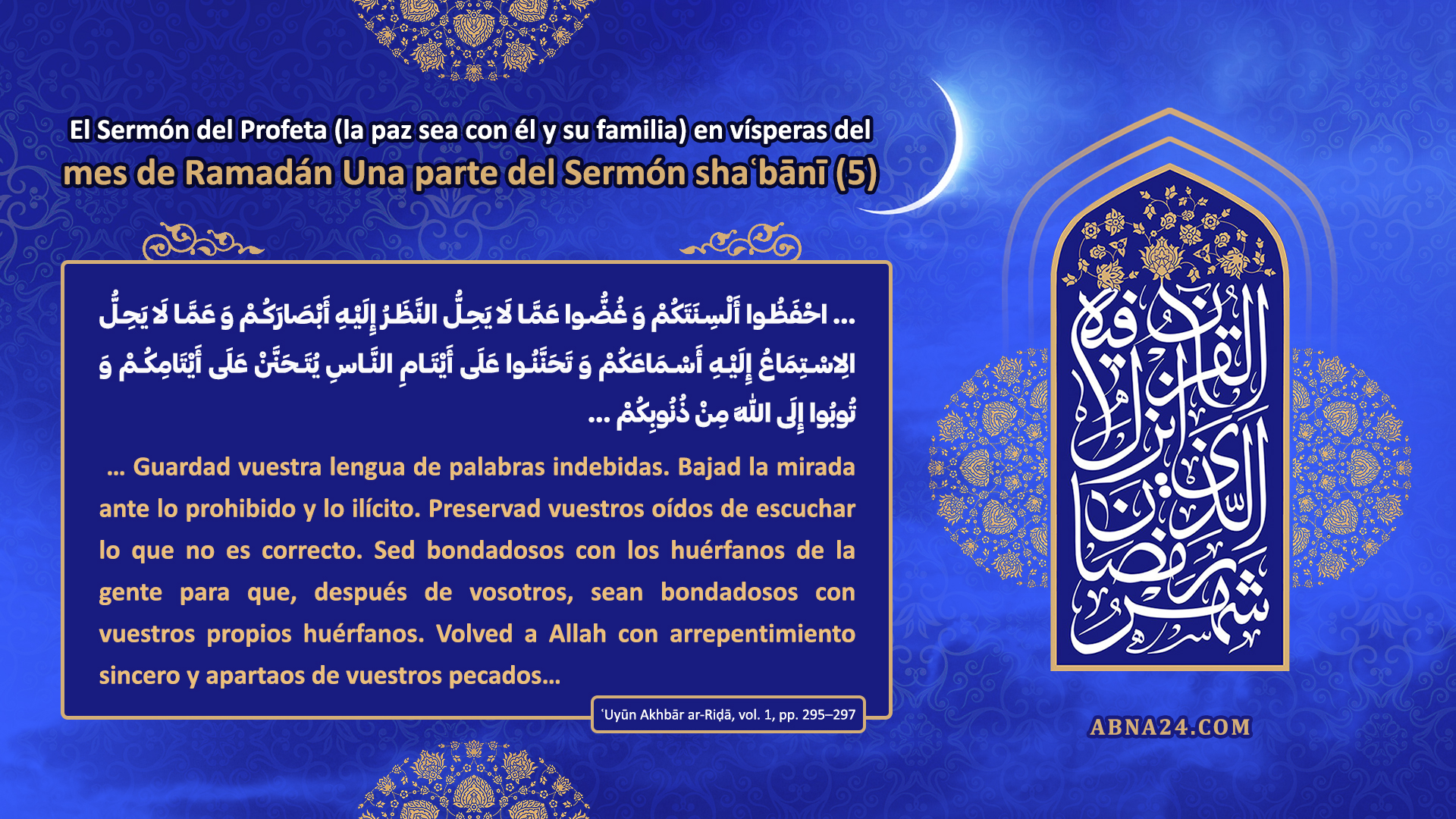 página de inicio Servicio de noticias Imágenes El Sermón del Profeta (BP) en vísperas del mes de Ramadán – Una parte del Sermón Shaʿbānī – Parte 5 26 febrero 2026 - 16:46 Código de noticia: 1782751 fuente: Abna24 Etiquetas Ramadán arrepentimiento sincero